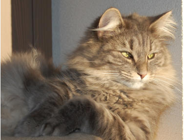 Lente was de eerste poes van de groep.We hebben onze catterynaam Våren Jitters (Lente kriebels) naar haar vermoemd.Lente was een rustige elegante Noor.Ze had een sterke kin, goed geplaatste oren en een kaars recht profiel.Knuffelen wilde ze alleen als zij er zelf zinin had maar zat ze een maal op je schoot dan was je haar beste vriend.